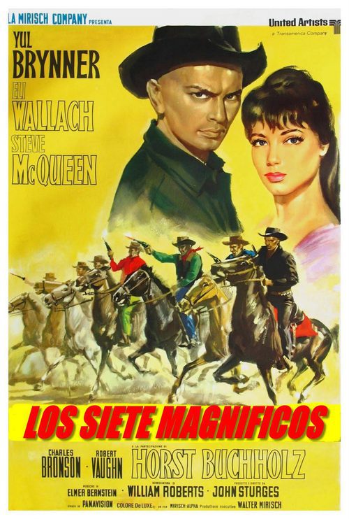 Recogiendo el éxito que iba dejando el cine de Kurosawa, en 1960, Hollywood hace uno de los remakes mas inteligentes de su historia, adaptando la anterior recomendación, pero llevándolo a su terreno y cambiando el Japón feudal y los samuráis por la America del viejo oeste. “Los 7 Magníficos” es una película de aventuras que narra la historia de un modesto pueblo Mexicano, que viven de la agricultura, hasta que un día se ven sometidos por una despiadada banda de forajidos, sin saber como defenderse, deciden contratar los servicios de siete pistoleros. Uno de los westerns más exitosos (aunque en su momento tuvo un estreno moderado). Ya que su fama fue creciendo poco a poco durante los 60s, se debe sobre todo al plantel actoral del film, reúne autenticas estrellas de Hollywood de ese momento como Steve McQueen, Yul Brynner o auténticos rostros del espagueti western como Charles Bronson o Eli Wallach, dirigida por John Sturges, gran representante del cine de acción y aventuras dentro del nuevo western americano o del bélico de la época, véase “La Gran Evasión” (1963) o “Duelo de Titanes” (1957), sin olvidarnos por supuesto de la mítica y popular Banda Sonora de Elmer Bernstein, son factores que hacen esta película un producto memorable.