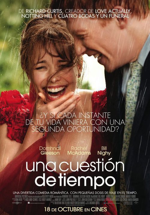 De las mejores comedias románticas de los últimos años, de 2013, Dirige y escribe el rey de la comedia británica romántica Richard Curtis, de hecho es su ultima película, a quien no le suene este nombre, ha dirigido y escrito “Love Actually” (2003) y en su faceta mas conocida, como guionista, ha escrito “Cuatro Bodas y un funeral” (1994), “Notting Hill” (1998) o las películas de “Bridget Jones”, vamos auténticos pilares del género, pero entrando en materia, “Una Cuestión de tiempo” narra la historia de un joven que al cumplir los 21 años descubre que puede viajar en el tiempo, su padre le cuenta que todos los hombres de la familia han tenido ese mismo don, poder regresar en el tiempo a un momento determinado, tantas veces como sean necesarias, hasta conseguir hacer “lo correcto”, así pues, el joven protagonista decide volver al pasado para intentar conquistar a la chica de sus sueños. El reparto son caras conocidas la mayoría “made in Uk” protagoniza el irlandés Domhnall Gleeson que es una cara que habréis visto en multitud de películas, comparte protagonismo con Rachel McAdams (mostrando una química entre ambos que merece mención) una actriz ya acostumbrada a los romances en pantalla, cierra el reparto el gran Bill Nighy un habitual del cine de Curtis o Tom Hollander entre otros, cabe destacar la pequeña aportación de una deslumbrante Margot Robbie en un papel bastante secundario antes de pegar el pelotazo y ser la diva de Hollywood que es ahora. El film esta claro que esta lleno de sensiblería, pero ojo! no es lacrimógena, si os gusta los anteriores trabajos ya mencionados de este director / guionista aseguramos que con este film no iba ser menos, es un guión muy fresco, una tragicomedia bien medida, es además divertida, pero su delicadeza la hace según avanza la trama cada vez más humana, sus imágenes intenta dejar un mensaje al espectador, de cerrar traumas del pasado que produzcan dolor, que aprendamos abordar riesgos de la mejor manera posible y por su puesto la gran reflexión de aprovechar cada momento… un autentico carpe diem fílmico. Curtis nos emociona con uno de sus mejores guiones ofreciéndonos una joya sencilla, divertida y muy emotiva.