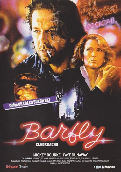 Seguimos alcoholizando la semana con esta propuesta americana de 1987, producida por Francis F. Coppola (Zoetrope Studios) un joven escritor alcohólico pero de enorme talento, pasa sus días en los bares, su preferido esta frecuentado por un variopinto grupo de mendigos, prostitutas y otros desechos de la sociedad. Un día encuentra a otra mujer bella y tan alcohólica como él. Relato autobiográfico del llamado poeta maldito, hablamos del reconocido escritor Charles Bukowski, el cual también escribió el guión. Dirige el actor y director suizo / francés Barbet Schroder, protagoniza un brillante a la par que espléndido Mickey Rourke entonces, en la cresta de su carrera, como uno de los jóvenes actores mas prometedores de Hollywood durante los 80s, con este personaje casi se puede decir que fue capaz de anticipar el infierno personal al que se vio abocado el y su carrera en años posteriores, ya que hoy posiblemente sea tan sucio, borracho y mujeriego como el propio Bukowski. Co-protagoniza la oscarizada Faye Dunaway, una de las grandes y mejores actrices del Nuevo Hollywood, que cumple con creces.