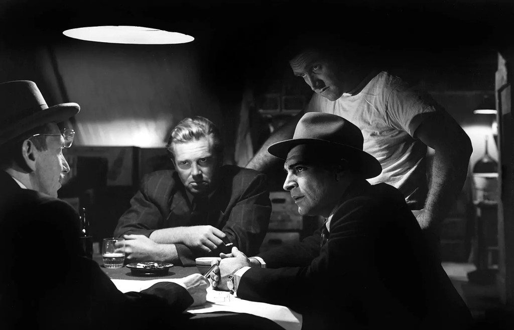 Uno de los grandes hitos de la historia del cine de robos y atracos de 1950, se puede decir que es el film inaugural de este subgénero del cine negro…donde diríamos que destacan 3 películas como la santa trinidad: esta, la francesa “Rififi” (1955) y “Atraco Perfecto” (1956) de Kubrick. Narra la planificación de un atraco a una joyería por parte de una banda de delincuentes. Dirige uno de los grandes maestros del cine negro, entendemos que no requiere de presentación alguna, hablamos de John Huston. El cual orquesta un reparto estelar, encabezado por uno de los rostros del genero y tipos duros de Hollywood, Sterling Hayden. Rodeado de secundarios magistrales como Louis Calhern, Anthony Caruso, Jean Hagen, debut serio de Marilyn Monroe o Sam Jaffe el cual fue recompensado con un Oscar a mejor actor secundario por su interpretación en esta película. También destaca un extraordinario y oscarizado libreto escrito por un gran guionista Ben Maddow junto al propio John Huston, que como suele ser habitual, el cineasta retrata unos personajes fatales, heridos por la vida, que viven al limite. Una historia muy bien contada y dirigida, que incluso por primera vez plantea algo único en el cine, que el publico empatice con el criminal… obviamente la película no justifica las acciones de estos, ya que tiene presente ciertos códigos morales de cara a su guión, donde existe una ley y esa linea que separa lo correcto de lo que no…características que desde entonces, siempre se han mantenido en películas del genero protagonizada por carismáticos ladrones, hasta que llegó “La Jungla de Asfalto” no era habitual e incluso diríamos que ni siquiera se habían realizado películas desde el punto de vista de los ladrones.