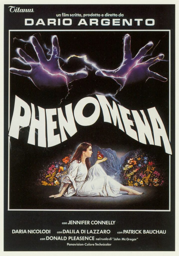 Extraña fantasia sobrenatural, donde la hija de un famoso actor de Hollywood, ingresa en un prestigioso internado en las montañas de Zurich. Muy pronto sucederán brutales asesinatos, obra de un psicopata. La joven, con ciertos dones paranormales de la telequinesia, ve sin estar presente esos asesinatos y utilizara su don para intentar desenmascarar al sádico asesino. Film de 1985, del ya mencionado Dario Argento, maestro del cine de terror italiano, un terrorífico film rodado en ingles, de su etapa más salvaje, brutal y sangrienta (los 80s) protagonizado por una jovencísima Jennifer Connelly en su primer papel principal, la cual venia de su pequeña pero importante aportación en “Erase una Vez en America” (1984) de Sergio Leone, completan el reparto el veterano de ojos hipnóticos Donald Pleasence o la musa y compañera sentimental del propio Argento, Daria Nicolodi. Esta gran pesadilla gotica de culto, no es la mejor película del maestro italiano, pero ofrece una gran realización, que sabe mezclar terror y suspense al mas puro estilo del giallo mas clásico, a pesar que este film es menos llamativo visualmente y pierde ciertas formas o manierismos del subgénero, como el tono más colorido y onírico, si que es cierto que no pierde esas ganas de ser una misteriosa historia extraña, de impacto visual, tan atractiva como desagradable. Ya que no es apta para estómagos sensibles. Cabe destacar que la película se censuró, principalmente en EEUU, y por ello existen dos versiones, la que se estreno en cines y la versión extendida sin censura. También destacamos su inquietante banda sonora ochentera donde vuelven a repetir en una película de Argento el grupo italiano de rock progresivo The Goblins, esta vez acompañados de Simon Boswell y una elección musical curiosa de canciones metal de Motorhead y Iron Maiden, temas cañeros de elección arriesgada que dan ambiente a algunas escenas de terror. Más allá de algún elemento inverosímil, “Phenomena” es un gran ejercicio de estilo donde el prestigioso realizador italiano nos ofrece una rareza diferente y más oscura de lo normal.